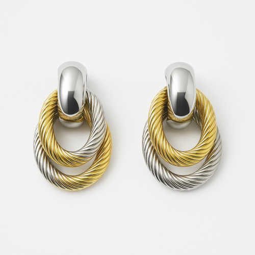 Σκουλαρίκια διπλές σταγόνες χρυσό-ασημί – Electra Collection