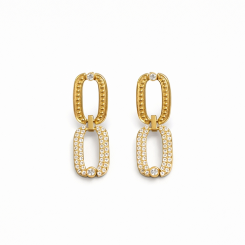 Χρυσά Σκουλαρίκια κρίκοι με διπλό οβάλ σχέδιο & zircon stones