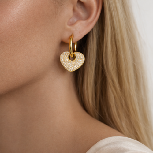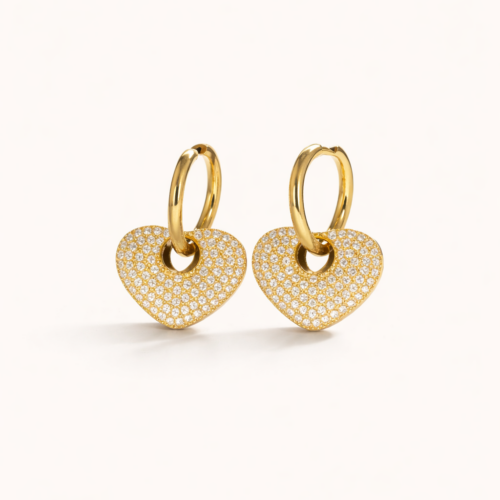 Χρυσά Σκουλαρίκια Κρίκοι με Καρδιά Mε Ζιργκον