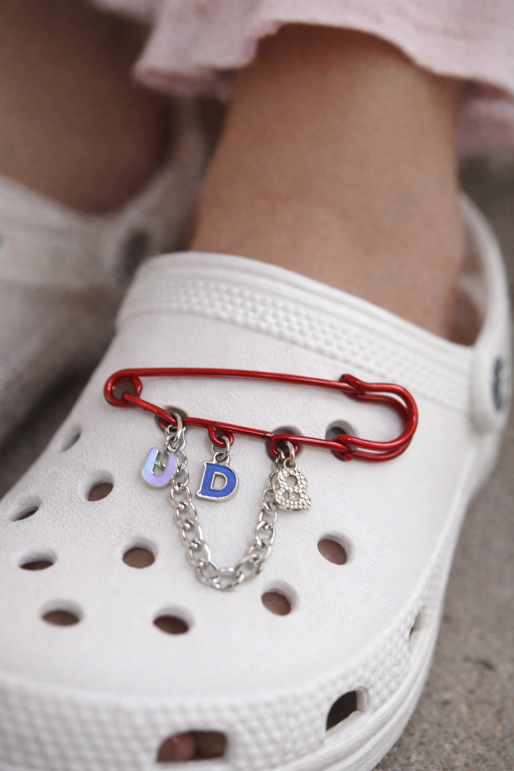 Tο Love Locks Crocs Charm είναι ένα ιδιαίτερο διακοσμητικό αξεσουάρ που δίνει playful και ρομαντικό χαρακτήρα στα Crocs σου. Με εντυπωσιακή παραμάνα σε κόκκινη απόχρωση, μεταλλική αλυσίδα και διακοσμητικά charms με γράμματα και καρδιά, δημιουργεί ένα statement αποτέλεσμα που ξεχωρίζει.