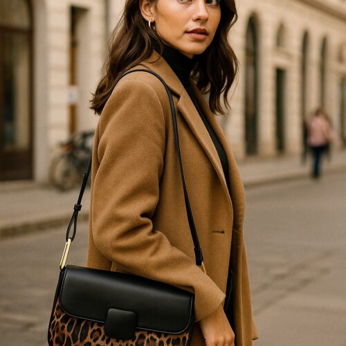 Ο συνδυασμός του μαύρου δέρματος με το animal print σχέδιο δημιουργεί έναν εντυπωσιακό αλλά διαχρονικό χαρακτήρα, ιδανικό για κάθε περίσταση – από τη βόλτα στην πόλη μέχρι τη βραδινή έξοδο.