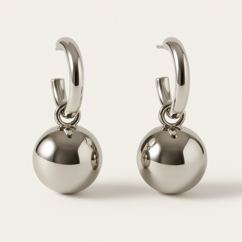 Minimal αλλά εντυπωσιακά, αυτά τα σκουλαρίκια από ανοξείδωτο ατσάλι διαθέτουν λείες κρίκους που καταλήγουν σε γυαλισμένα σφαιρικά στοιχεία. Ο κομψός σχεδιασμός τους τα κάνει ιδανικά για καθημερινή χρήση αλλά και για πιο ιδιαίτερες εμφανίσεις. Ανθεκτικά, υποαλλεργικά και διαχρονικά, προσθέτουν μια μοντέρνα πινελιά σε κάθε look.