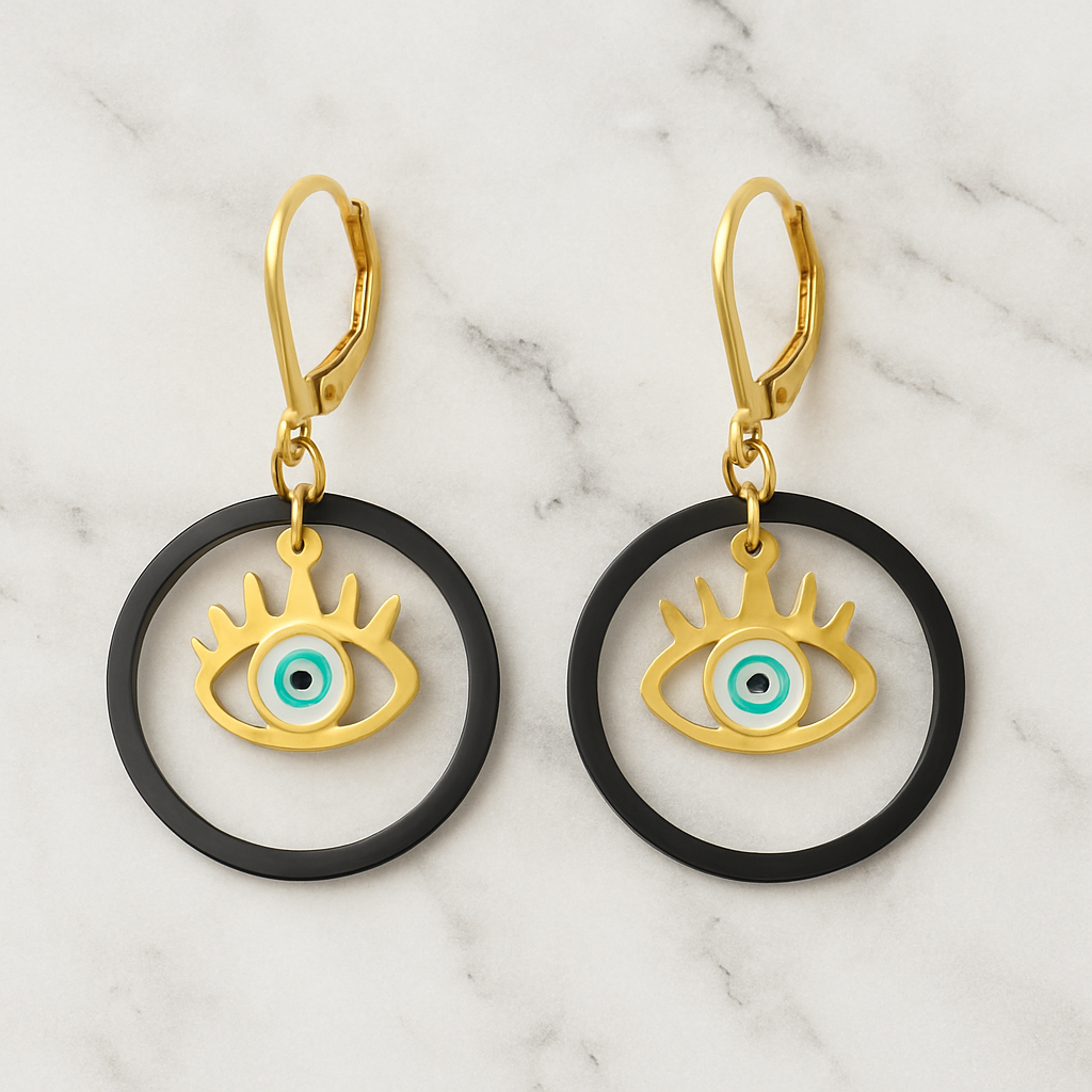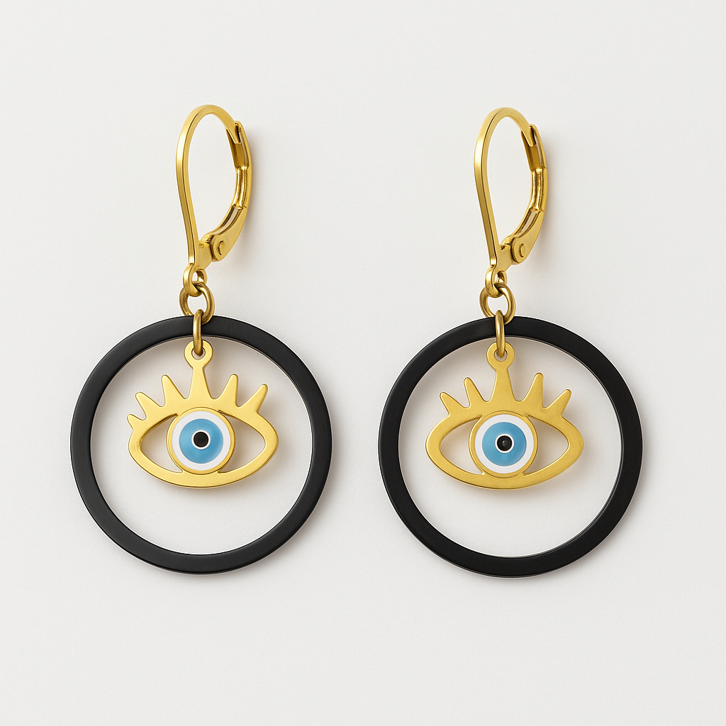 Σκουλαρίκια Eye με Μαύρο Κρίκο & Χρυσή Λεπτομέρεια