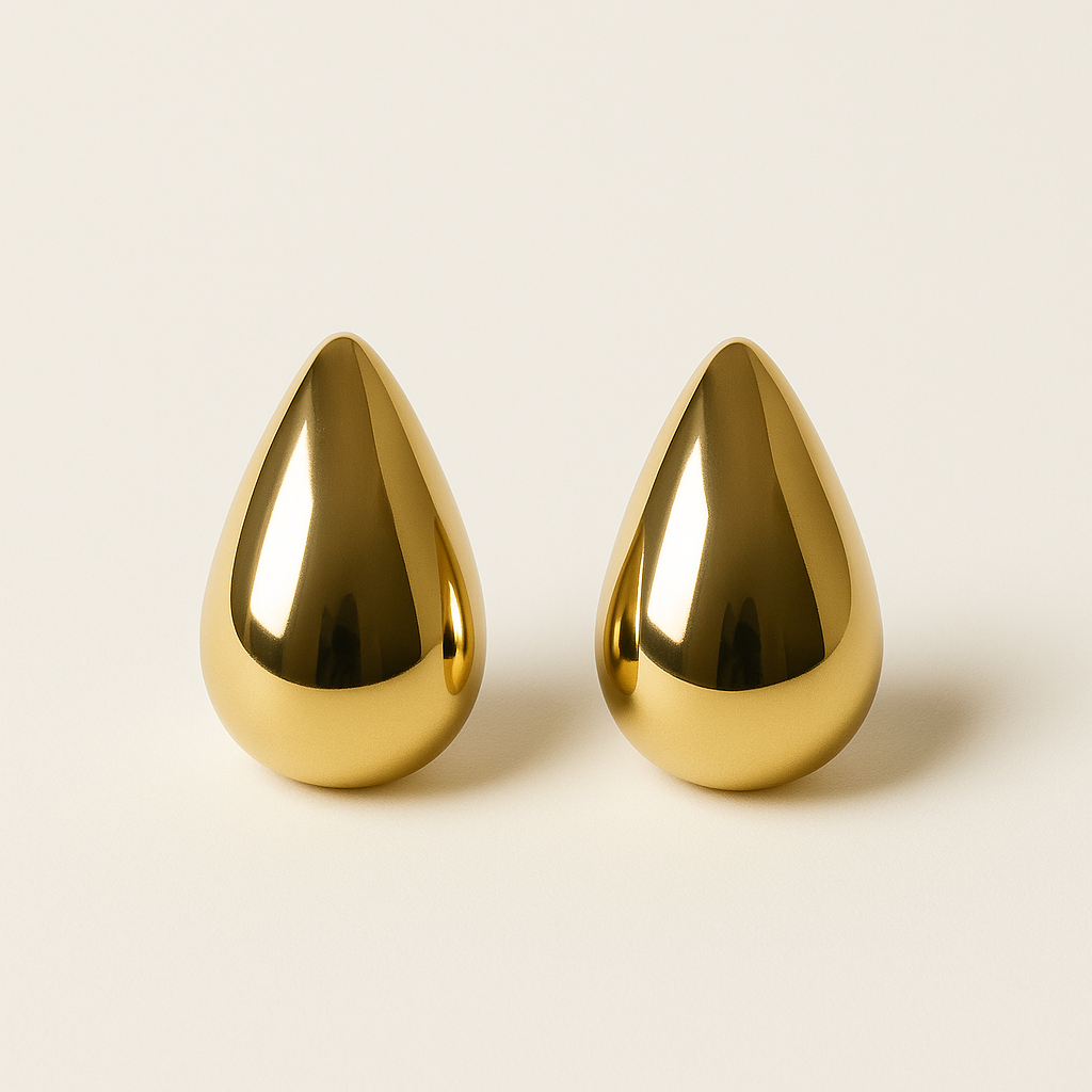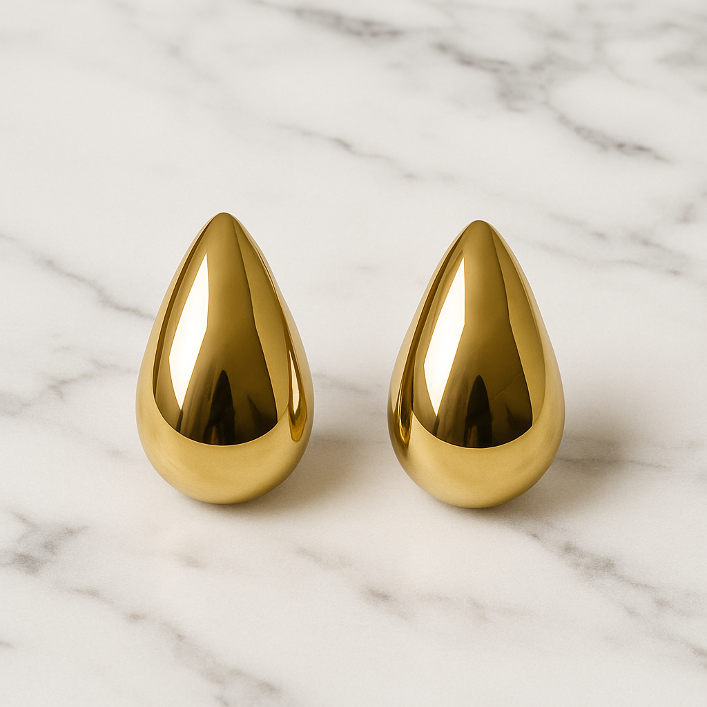 Κομψά σκουλαρίκια σε σχήμα δάκρυ με γυαλιστερή χρυσή επιφάνεια και καρφάκι από ατσάλι.