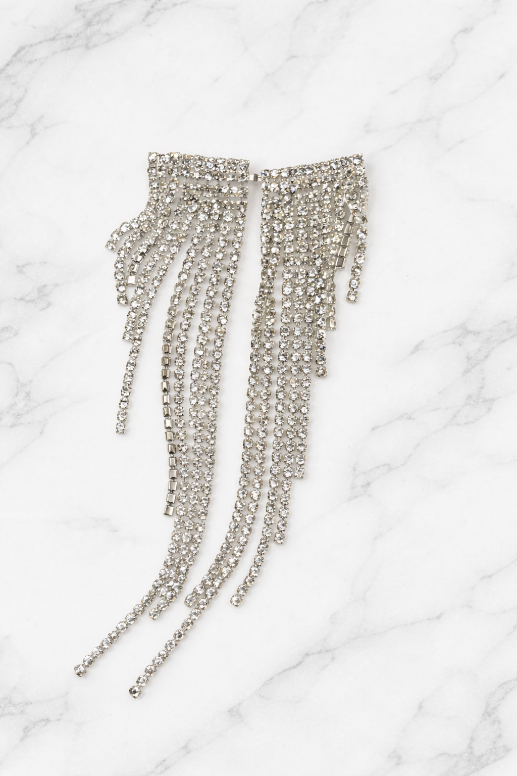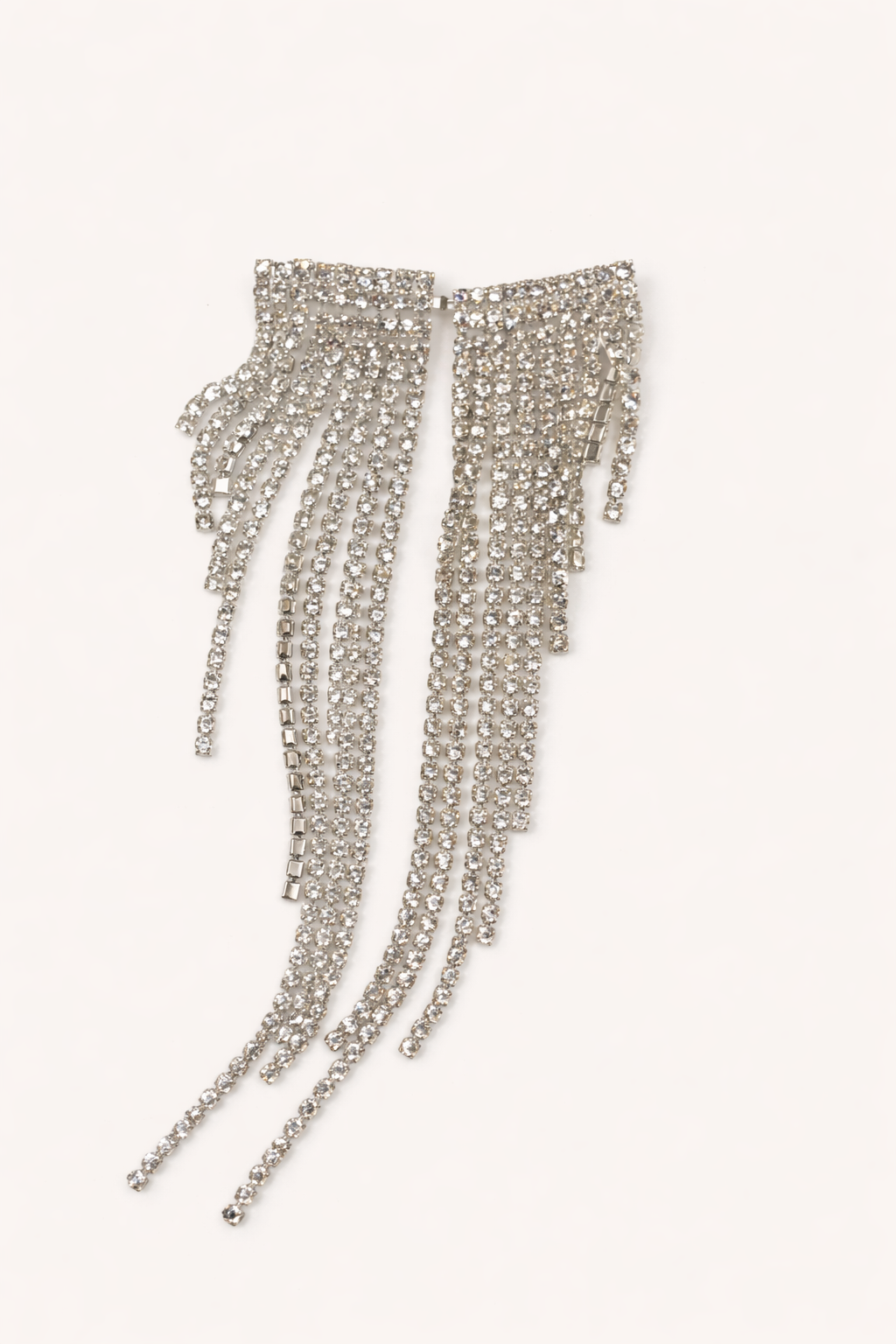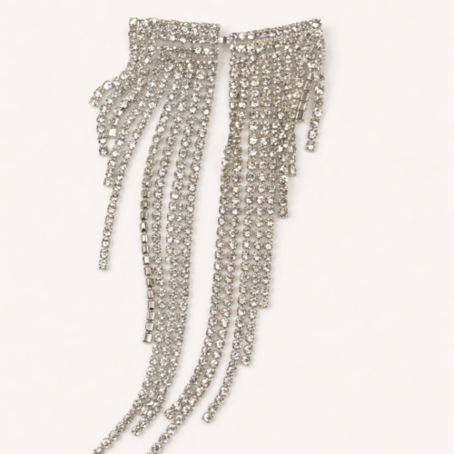 Εντυπωσιακά σκουλαρίκια με λαμπερά κρύσταλλα και κομψά κρόσσια που χαρίζουν κίνηση και λάμψη σε κάθε εμφάνιση. Ο γεωμετρικός σχεδιασμός τους σε συνδυασμό με τις σειρές από κρυστάλλους δημιουργεί ένα statement κόσμημα, ιδανικό για βραδινές εξόδους, events και ιδιαίτερες περιστάσεις.