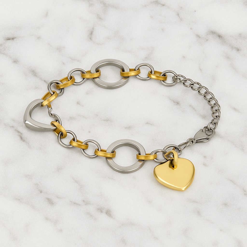Βραχιόλι Αλυσίδα Δίχρωμο με Καρδιά