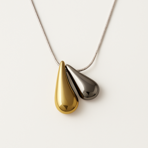 Κολιέ με διπλές σταγόνες ασημί χρυσό – Electra Collection